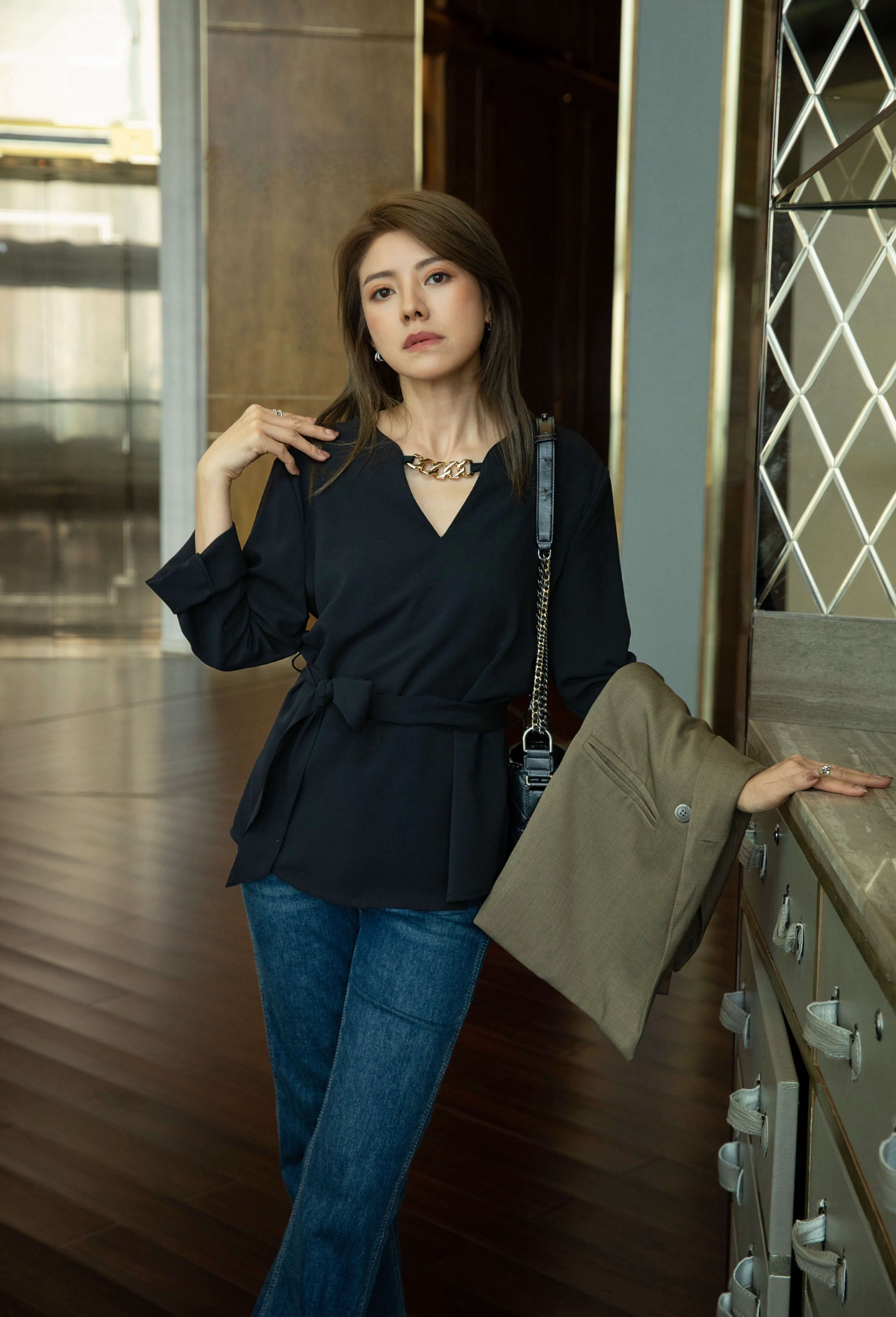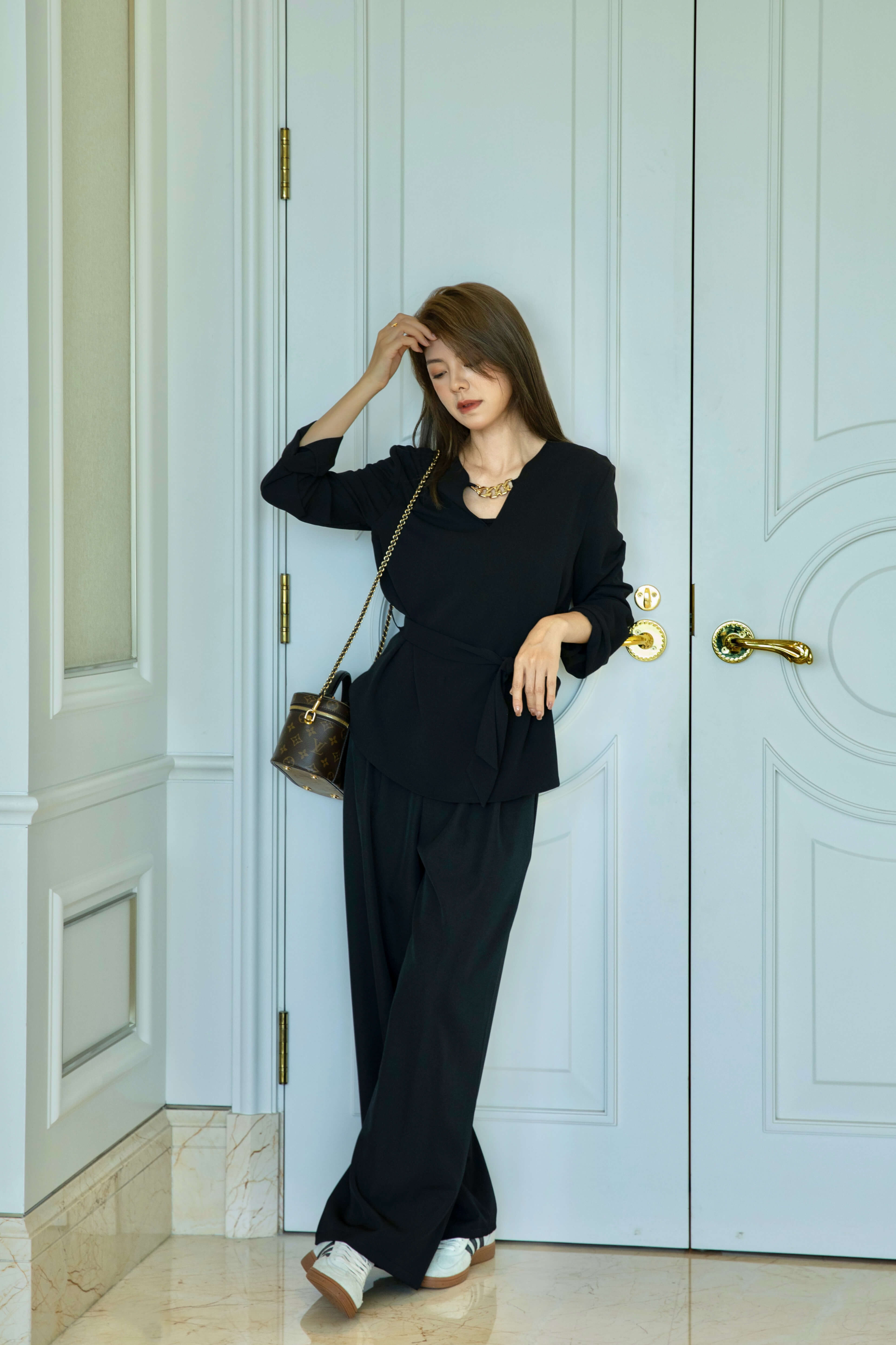 • The model wears size S and is 161cm tall, 25.5” (64.8cm) high waist, and 35.5” (91cm) hip.