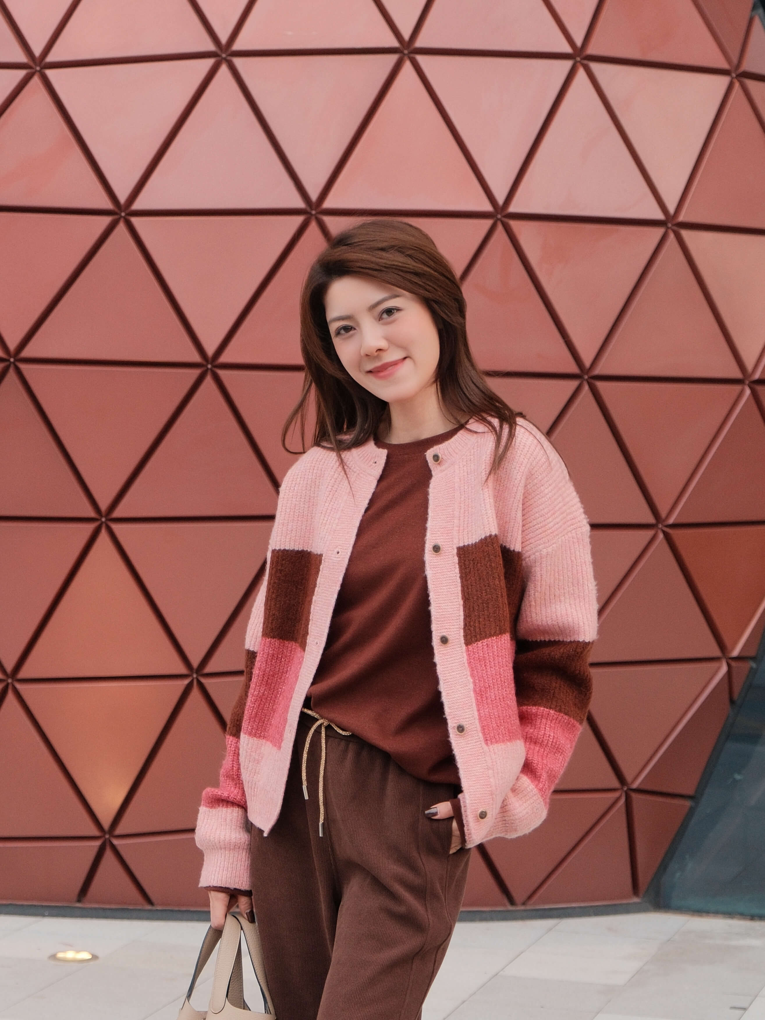 It's knitted from a warm alpace-blend and has contrast stripes. Layer yours over a plain tank or T-shirt.