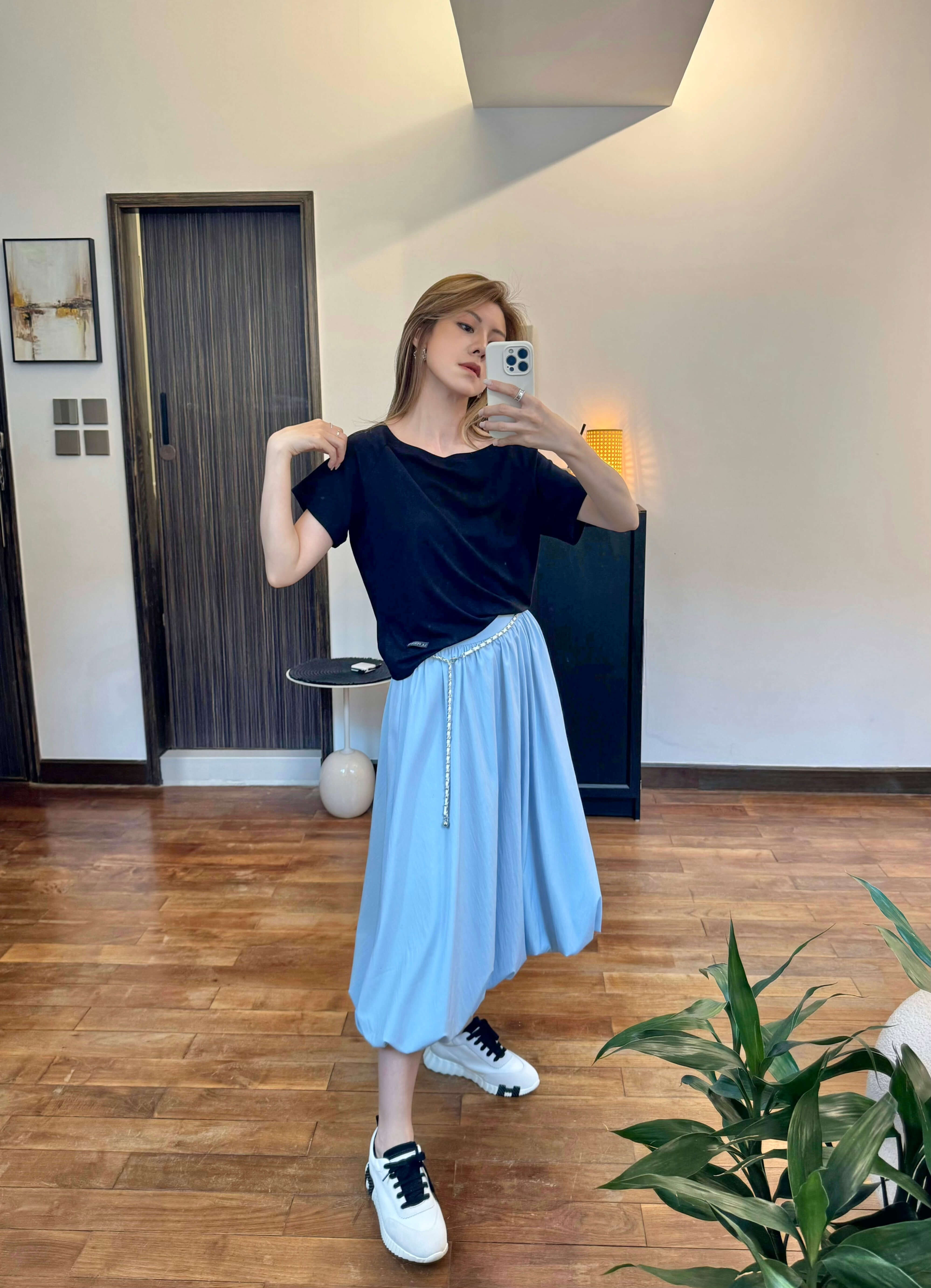 • The model wears size S and is 161cm tall, 25.5” (64.8cm) high waist, and 35.5” (91cm) hip.
