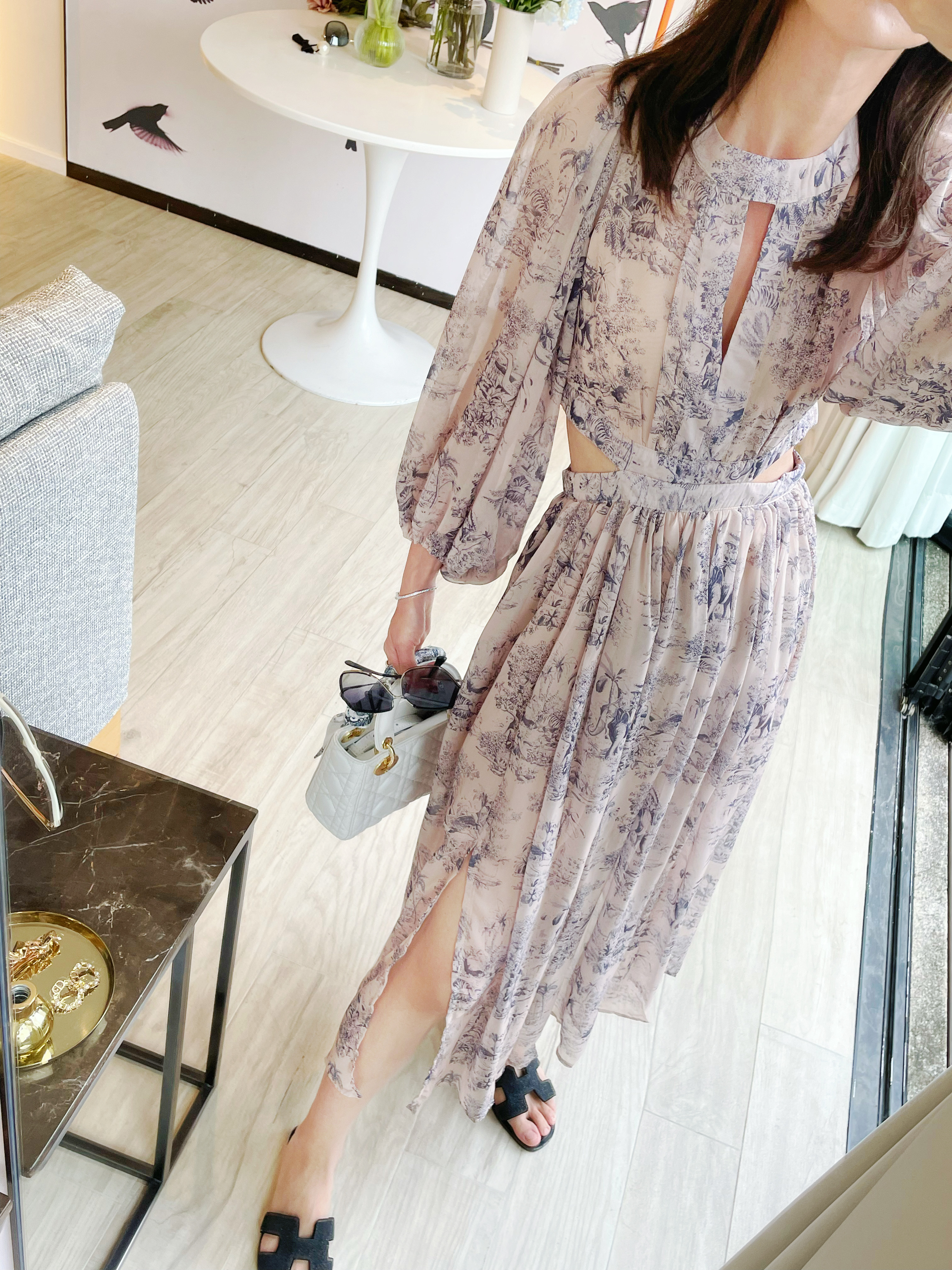 • The model wears size XS and is 161cm tall, 24.5” (62.3cm) high waist, and 34” (86.5cm) hip