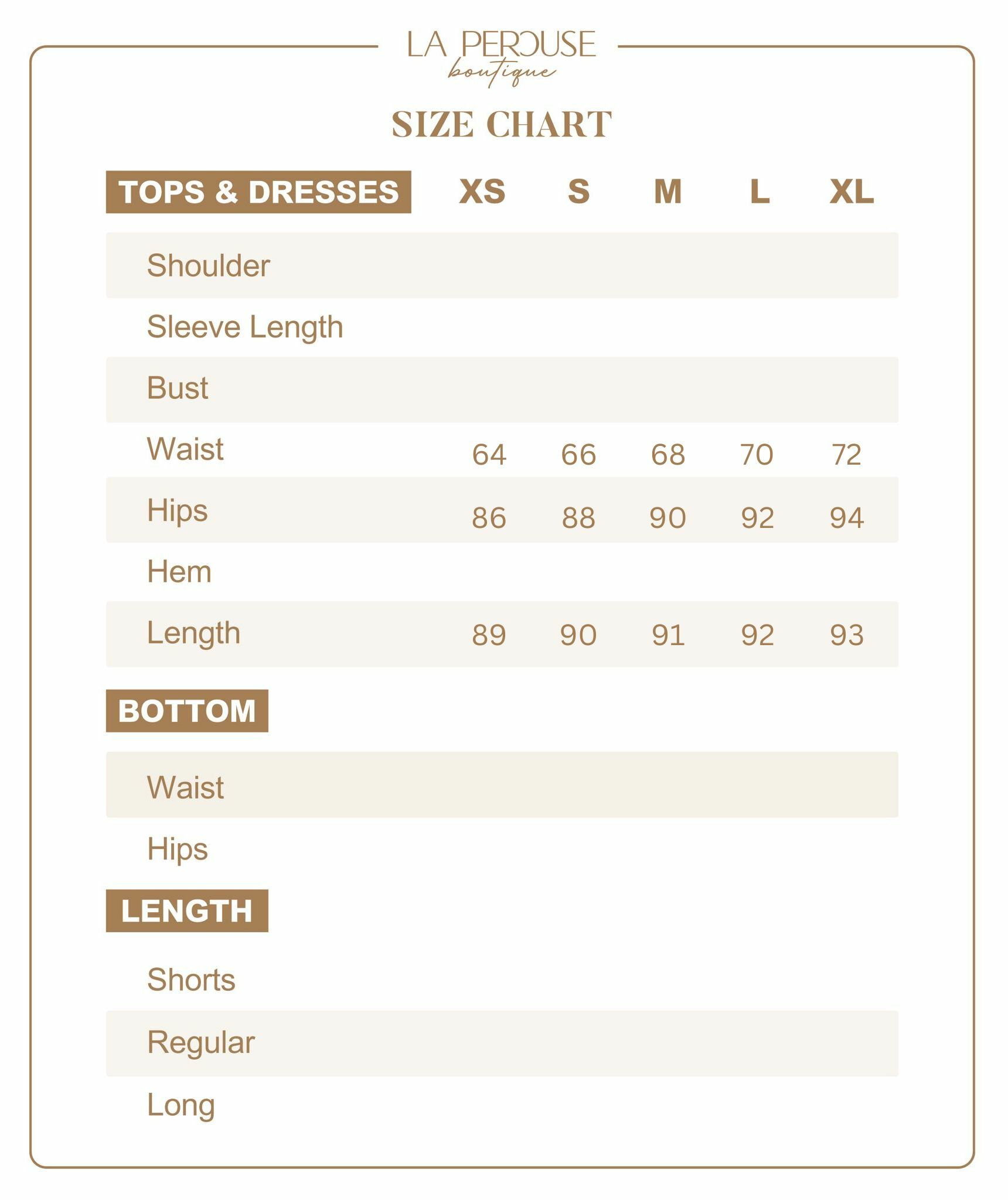 • The model wears size S and is 161cm tall, 25.5” (65cm) high waist, and 35” (89cm) hip.