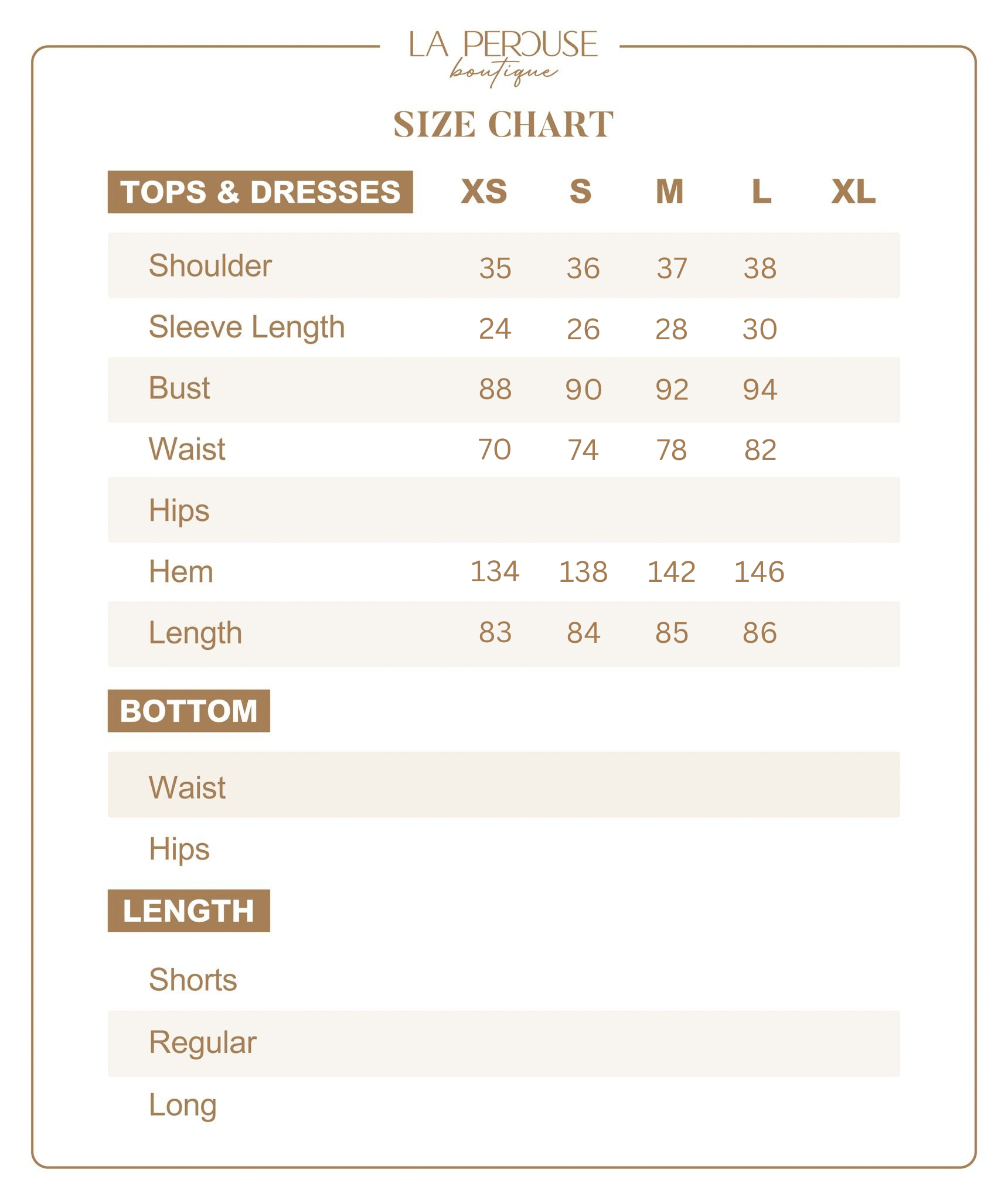 • The model wears size XS and is 161cm tall, 24.5” (62.3cm) high waist, and 34” (86.5cm) hip.