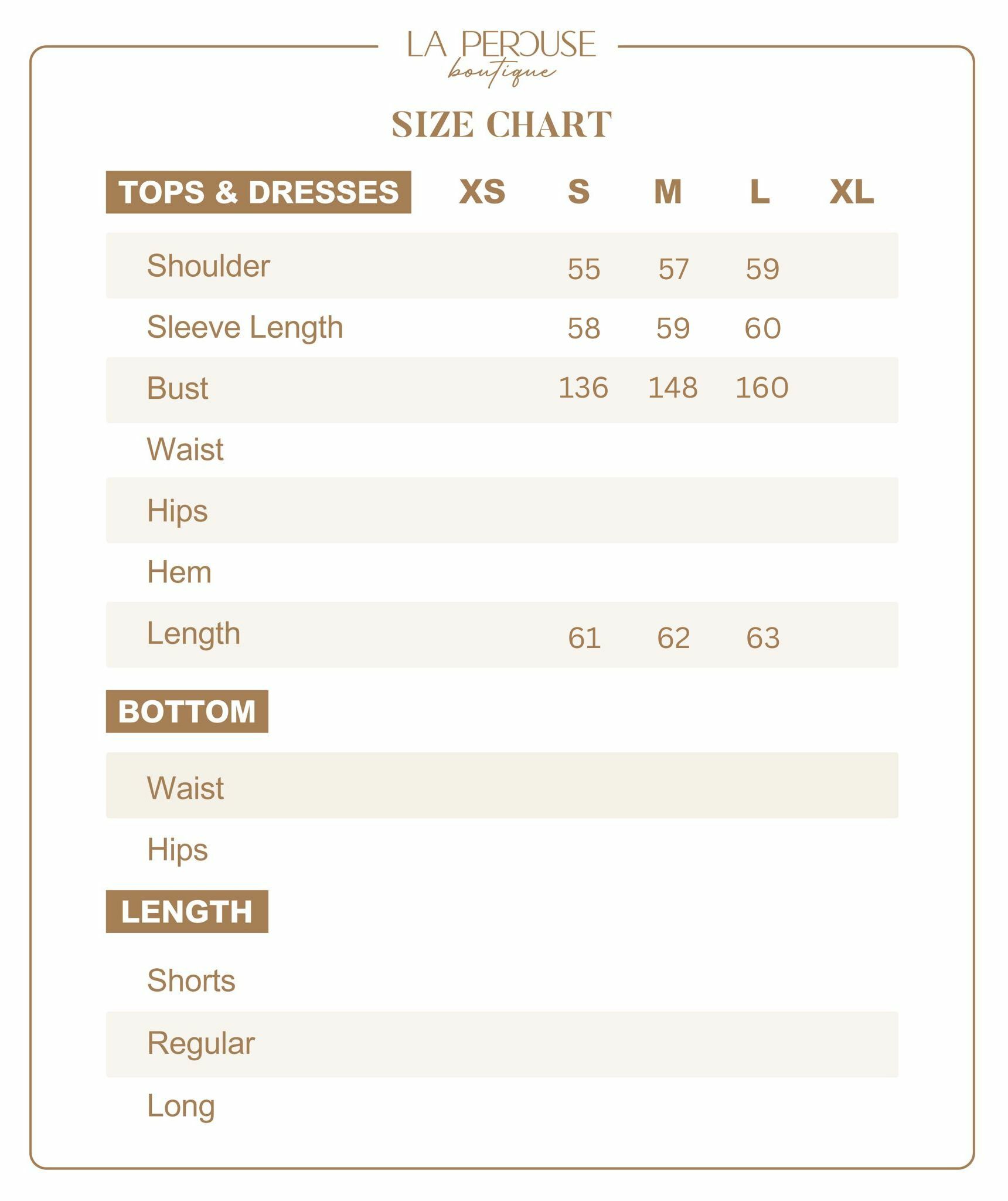 • The model wears size XS and is 161cm tall, 25.5” (65cm) high waist, and 35” (89cm) hip.