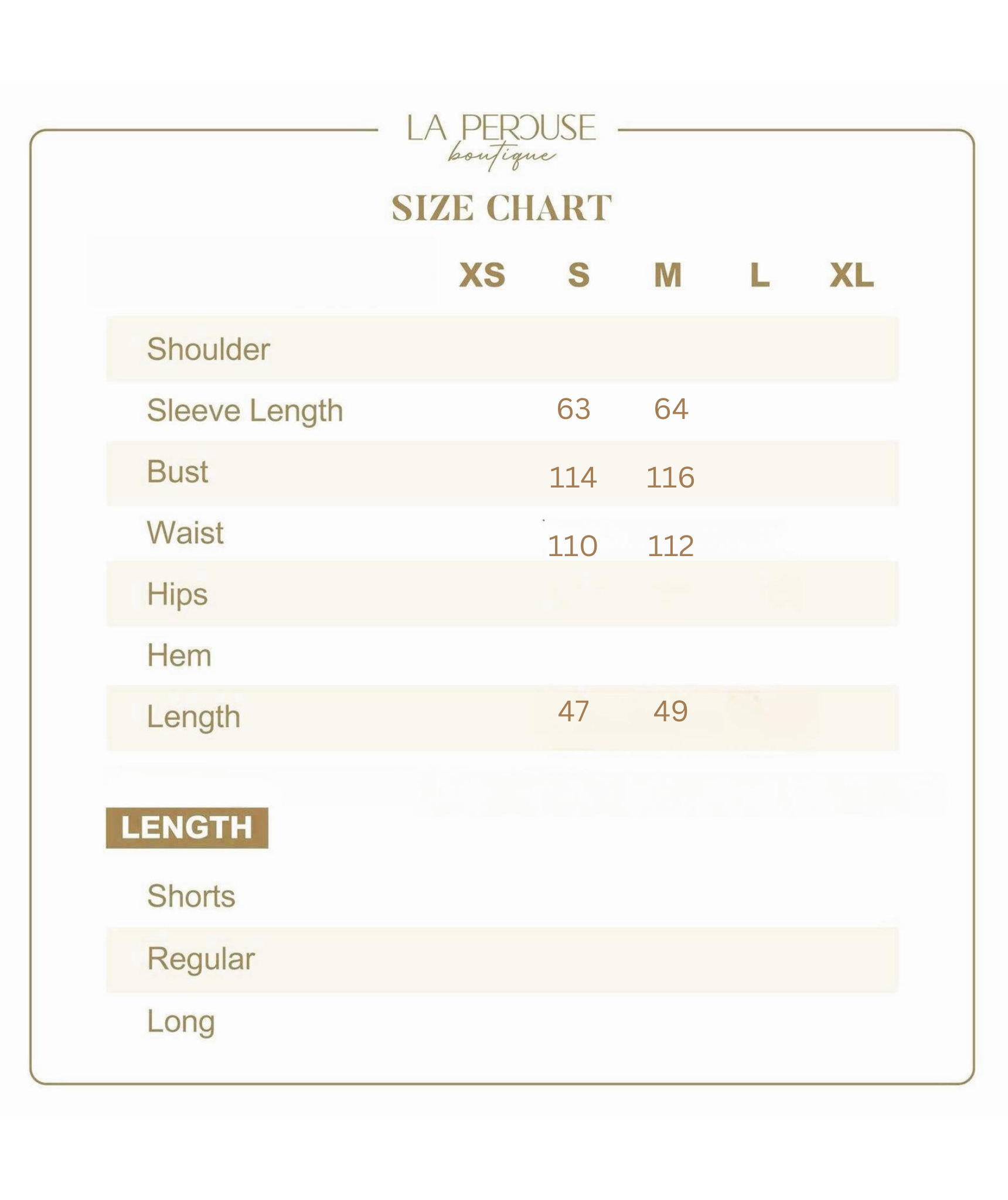 • The model wears size S and is 161cm tall, 25.5” (64.8cm) high waist, and 35.5” (91cm) hip.