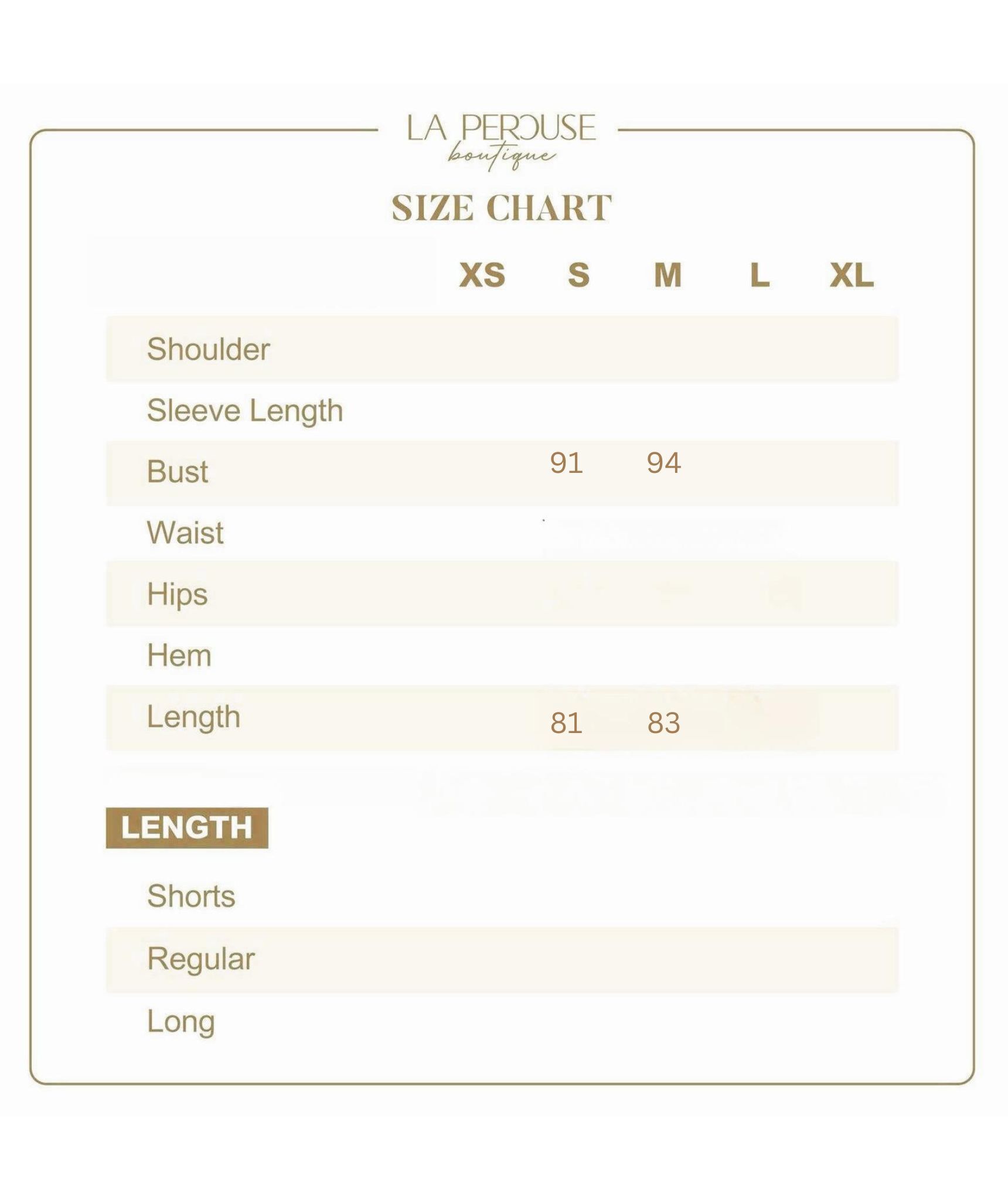 • The model wears size S and is 161cm tall, 25.5” (64.8cm) high waist, and 35.5” (91cm) hip.