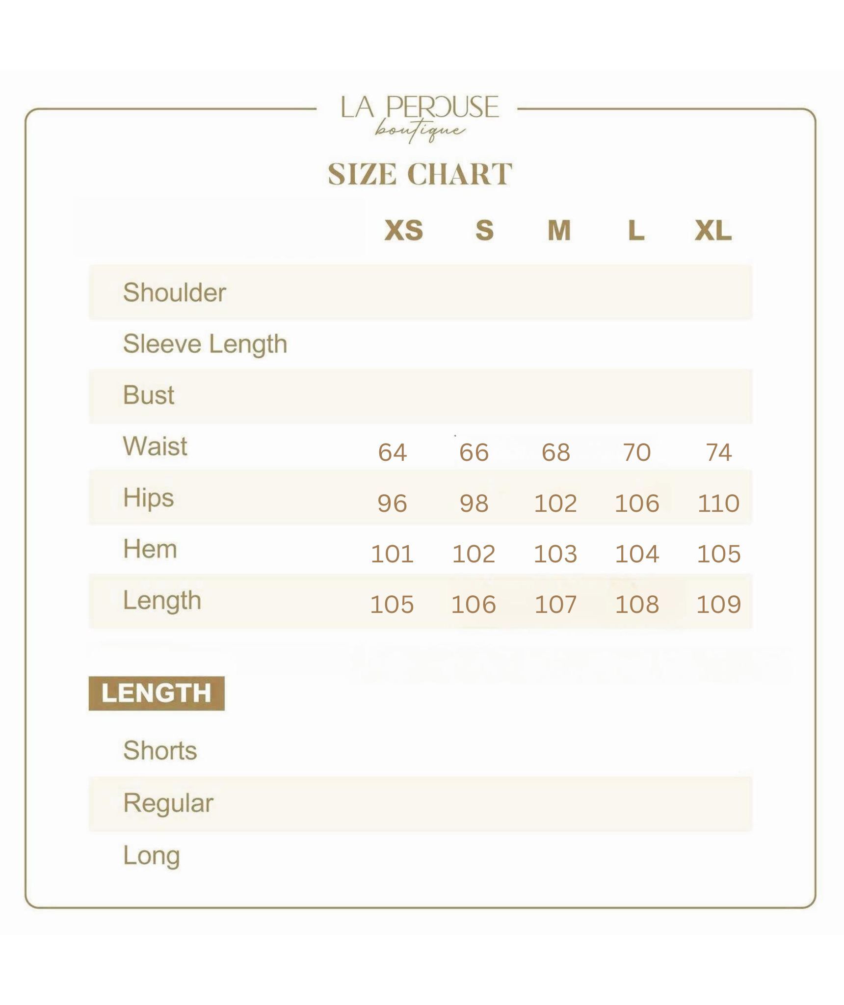 • The model wears size S and is 161cm tall, 25.5” (65cm) high waist, and 35” (89cm) hip.
