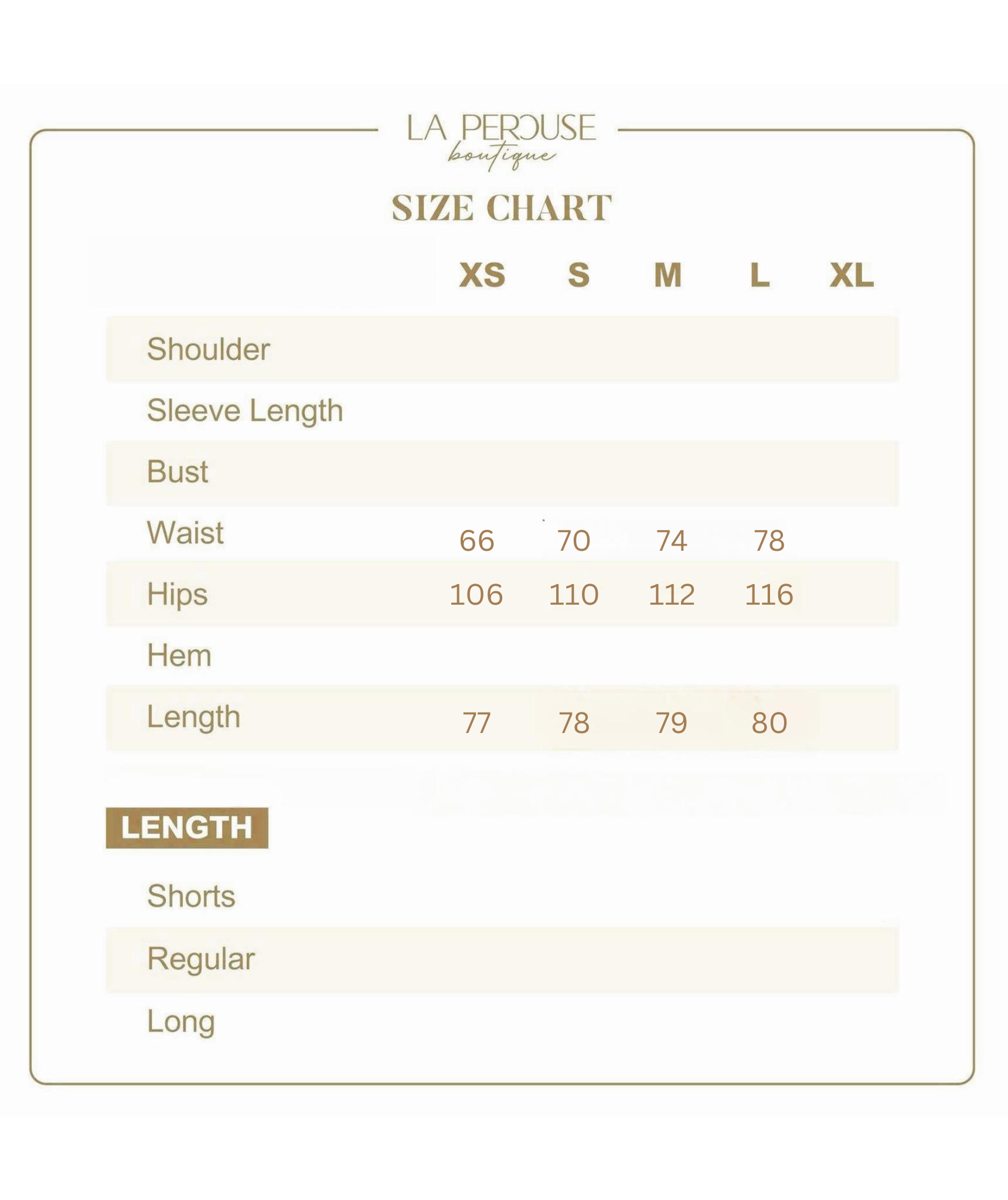 • The model wears size S and is 161cm tall, 25.5” (64.8cm) high waist, and 35.5” (91cm) hip.