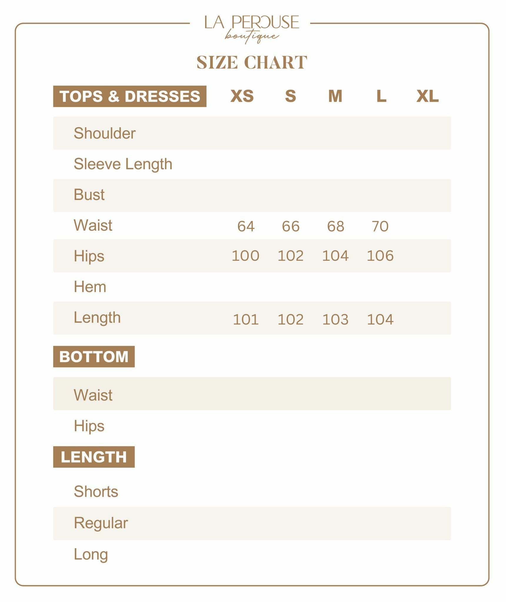 • The model wears size S and is 161cm tall, 26” (66cm) high waist, and 35.5” (91cm) hip.