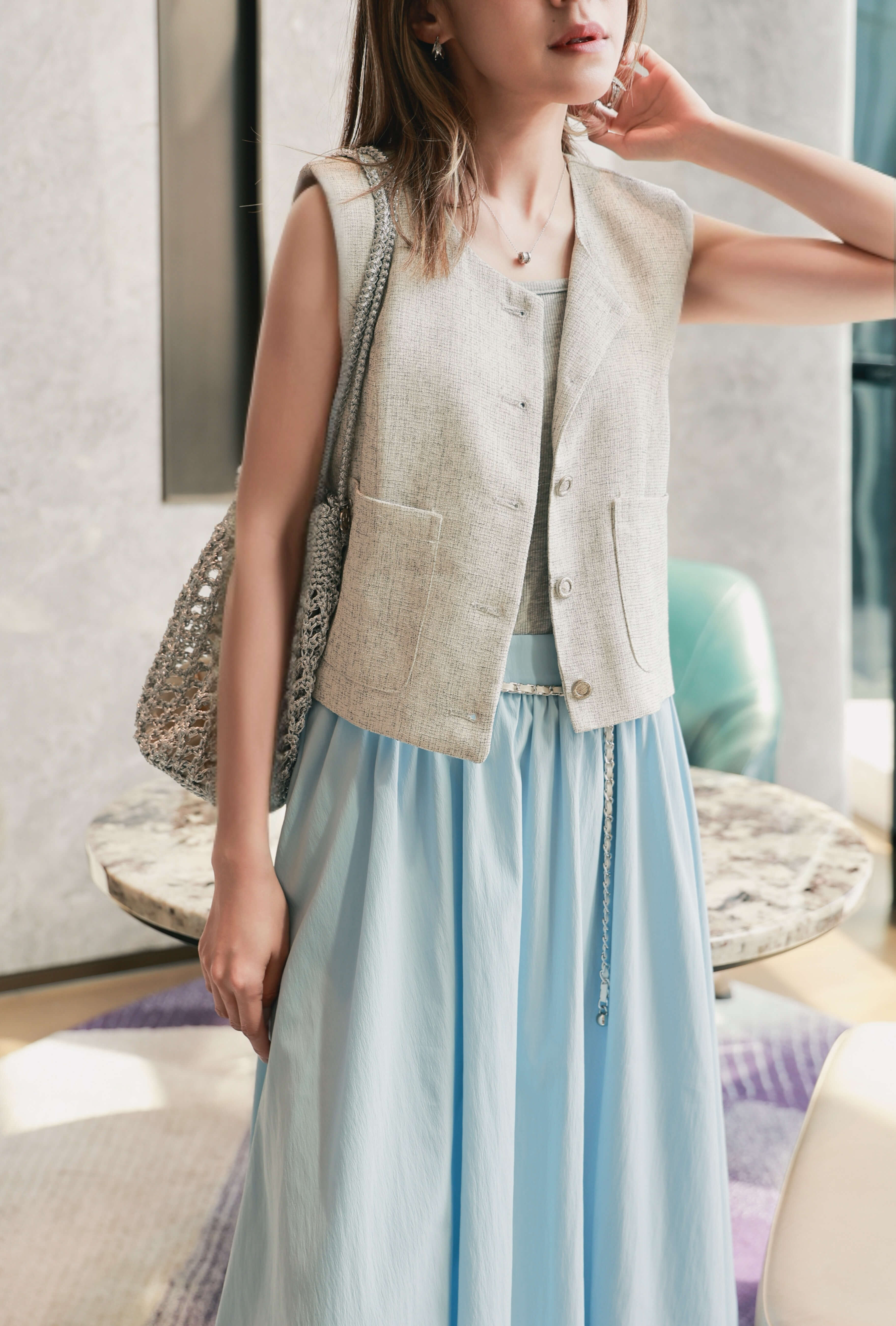 • The model wears size S and is 161cm tall, 25.5” (64.8cm) high waist, and 35.5” (91cm) hip.