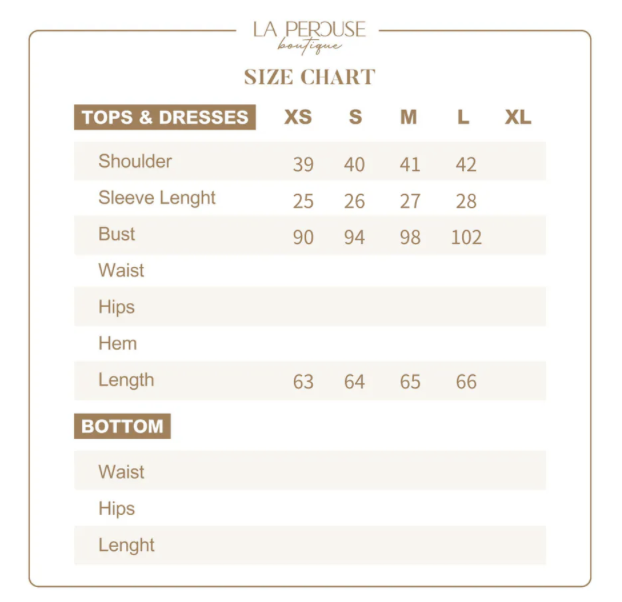 • The model wears size XS and is 161cm tall, 24.5” (62.3cm) high waist, and 34” (86.5cm) hip.