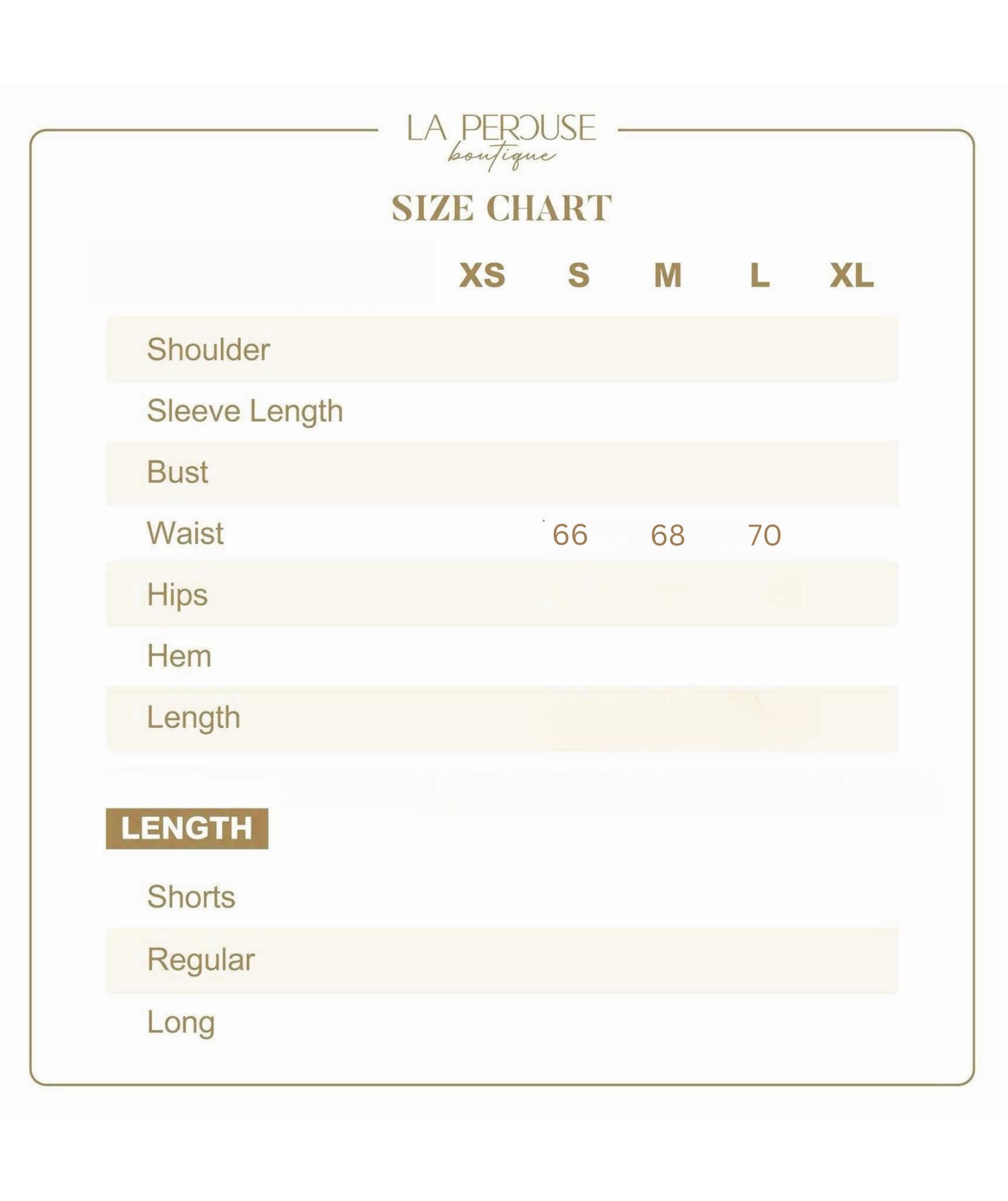 • The model wears size S and is 161cm tall, 25.5” (64.8cm) high waist, and 35.5” (91cm) hip.